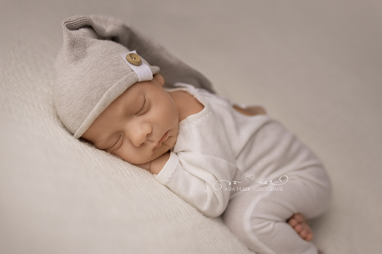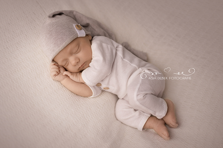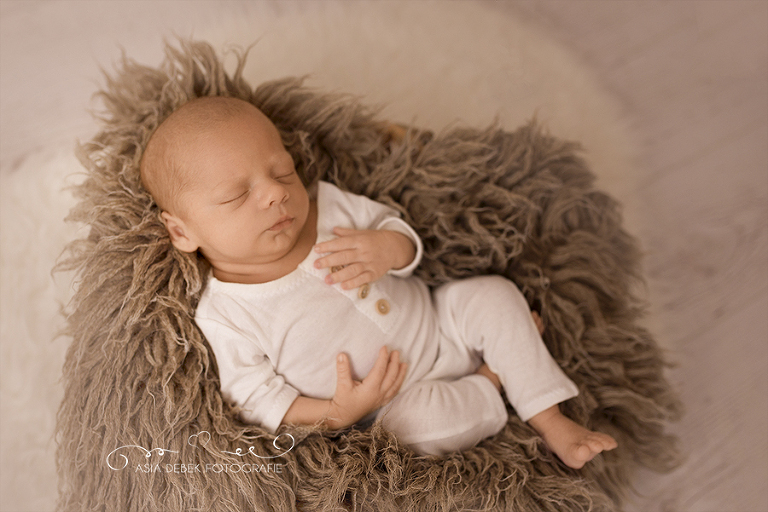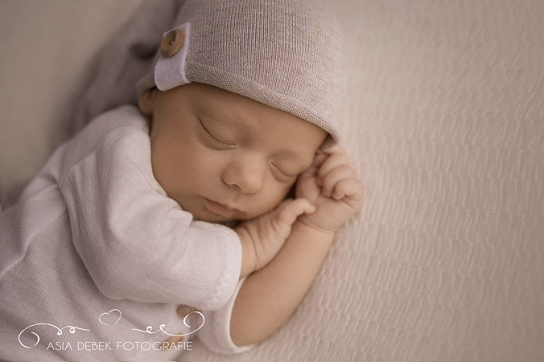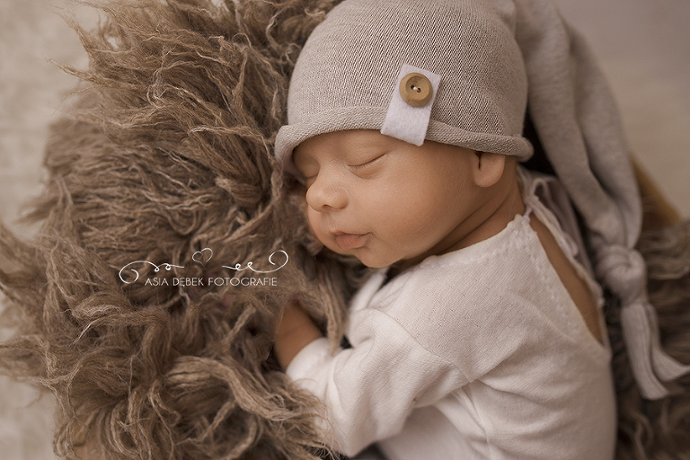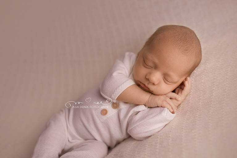 Zapamiętam ją szczególnie, bo to pierwsza sesja noworodkowa, którą wykonałam w moim nowym studio. I chociaż nie wszystko było wykończone na wysoki połysk i ciągle jeszcze brakowało tego i owego to Alexowi zdaje się nie brakowało niczego 🙂 Na początku trochę zdziwiony bacznie mi się przyglądał i z zainteresowaniem słuchał bajek o żabach ale w końcu zmożony tym pozowaniem i uśmiechaniem się do zdjęć zasnął 😉