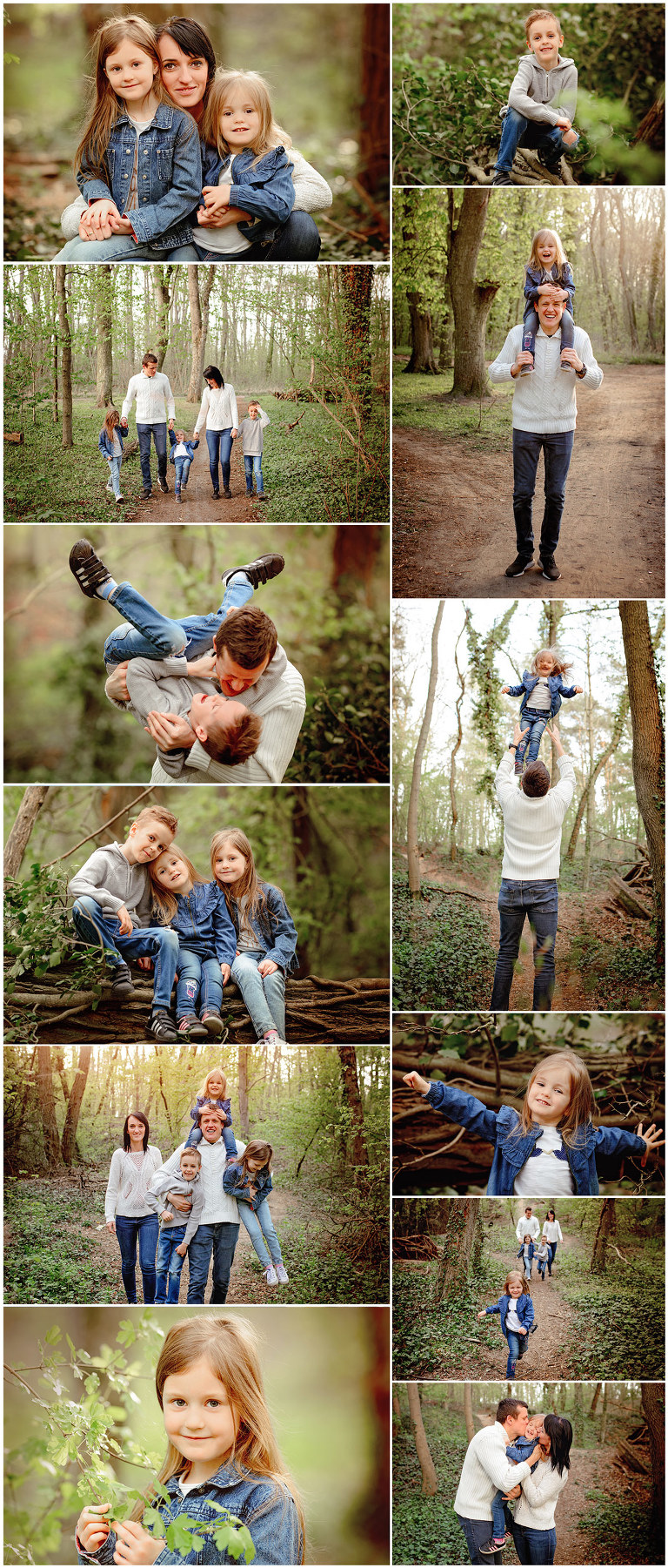 Na sesji rodzinnej zazwyczaj staram się zrobić zarówno portrety „do ramki”, całej rodziny, jak i poszczególnych członków, którymi będziecie mogli ozdobić ściany w swoim domu, a także obdarować najbliższych. Ale! Bardzo istotne są też te momenty „pomiędzy”, w czasie zabawy, śmiechu, przytulania itp. W tych drobnych gestach można się dopatrzeć ogromu łączących Was uczuć.
